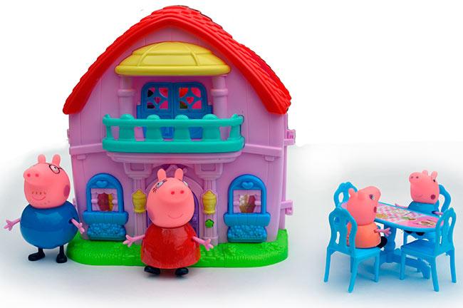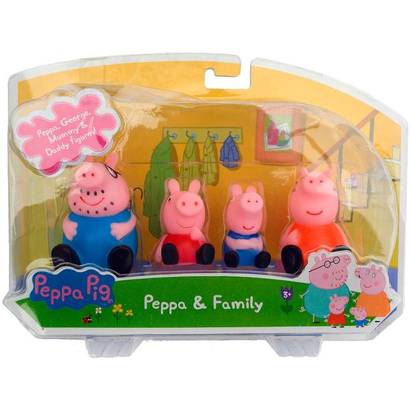 4 фигурки: Свинка Пеппа, ее младший братик Джордж, мама Свинья и папа Свин.