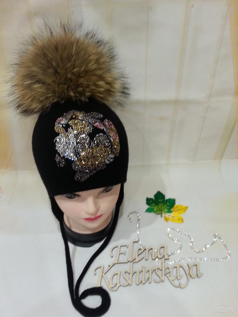 Вяжу на заказ шапочки с ручным декором из страз под любые курточки, пальтишки, коминезончики