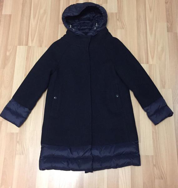 Пуховик из двух видом ткани, очень стильный, ЦВЕТ ТЕМНО-СИНИЙ
