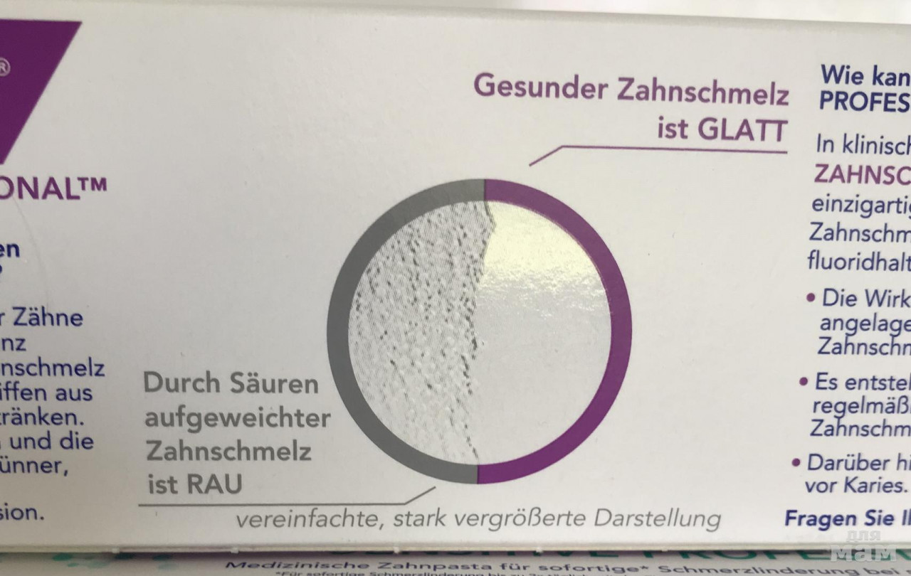 Кроме того, содержащийся в пасте фтор (1450 ppm Natriummonofluorhosphat) защищает зубы от кариеса, а так же кариеса пришеечной области зубов.