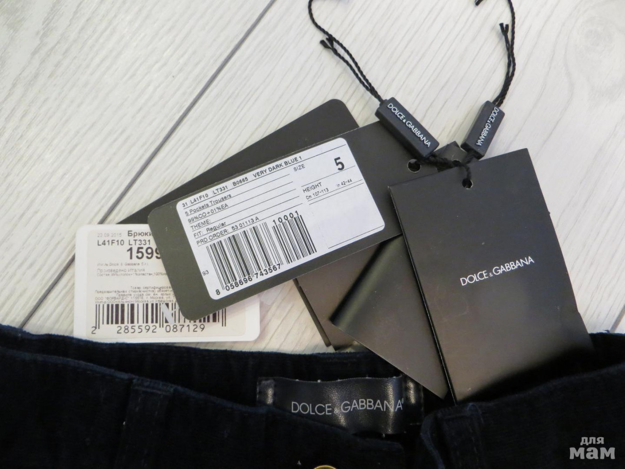 Продам отличные вельветки Dolce&Gabbana, цвет темно-темно синий. Размер по маркировке - 5 лет. Состояние отличное. Есть утяжка по талии.