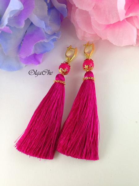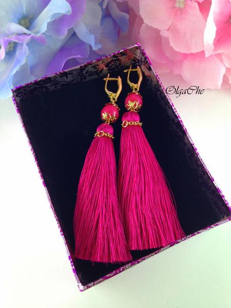 Очень яркие серьги-кисти невероятного цвета Фуксия!