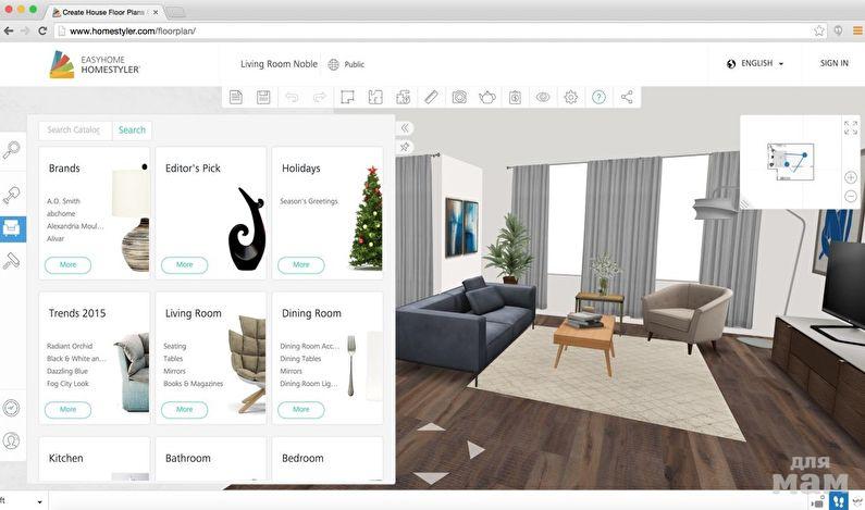 Постоянно развивающаяся и обновляющаяся программа для дизайна интерьера с обширным каталогом. Сервис был создан российскими разработчиками для российской аудитории, поэтому вы сможете быстро освоиться в функционале.