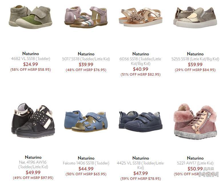 Naturino- итальянская детская обувь, которая помогает правильному формированию ножек и заботится об осанке. Уникальные качества этой детской обуви - это сочетание инновационных технических решений с качественными материалами. Все модели обуви разрабатываются вместе с ортопедами и педиатрами. 6pm радует нас скидками до 60% на любимый бренд!