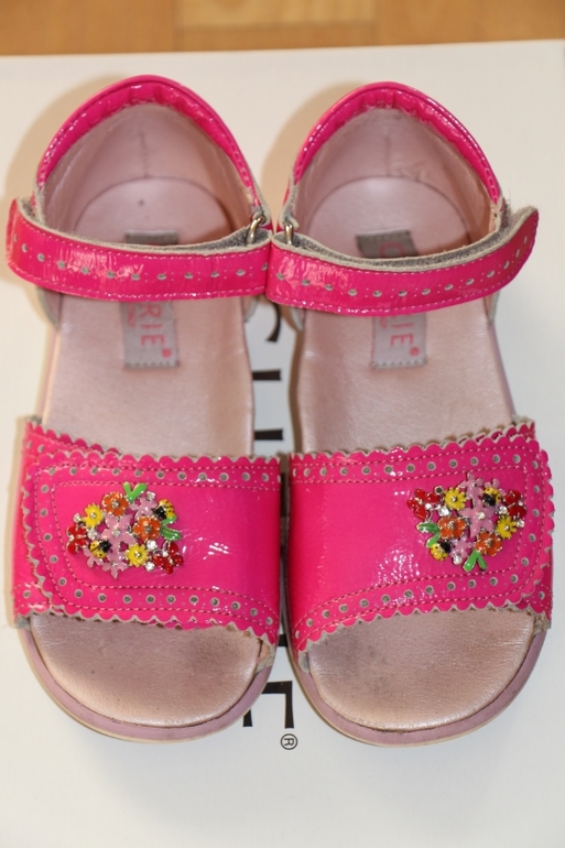 Туфли Equerry 31р. Очень симпатичные)) В идеале, не считая, что один цветок (в серединке) немного расклеился, умельцы очень легко все сделают. Ребенок пролил воду. Стелька 19,5см.