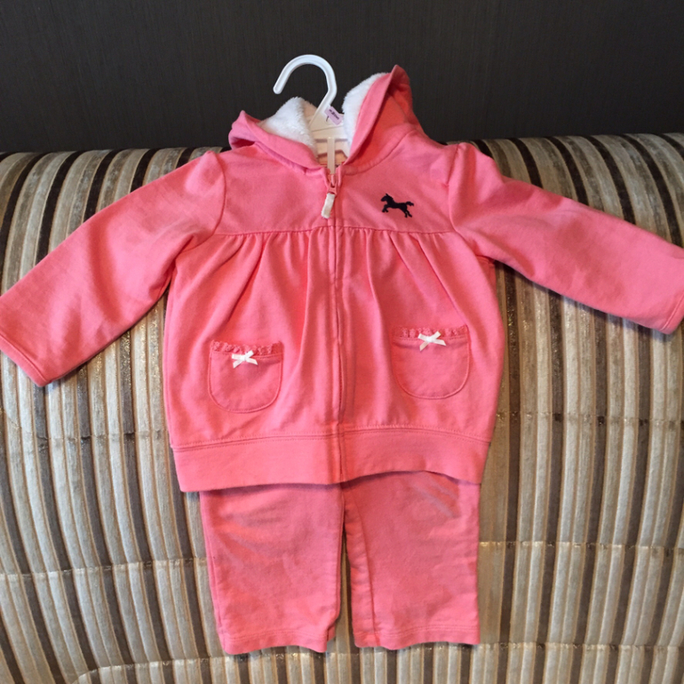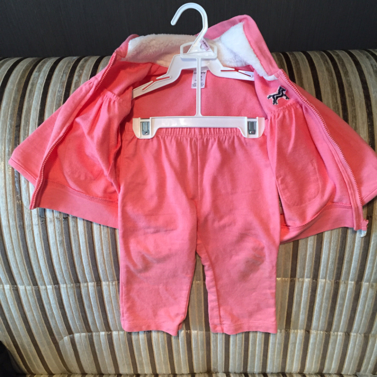Костюм, хлопок, капюшон утеплен, сам тоже тепленький в комплекте белый бодик с коротким рукавом в розовую лошадку на 9-12 мес. 700 руб. ПРОДАН!!!