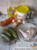 Маринованные (соленые) огурцы нарезать тонкой соломкой или небольшими кубиками.