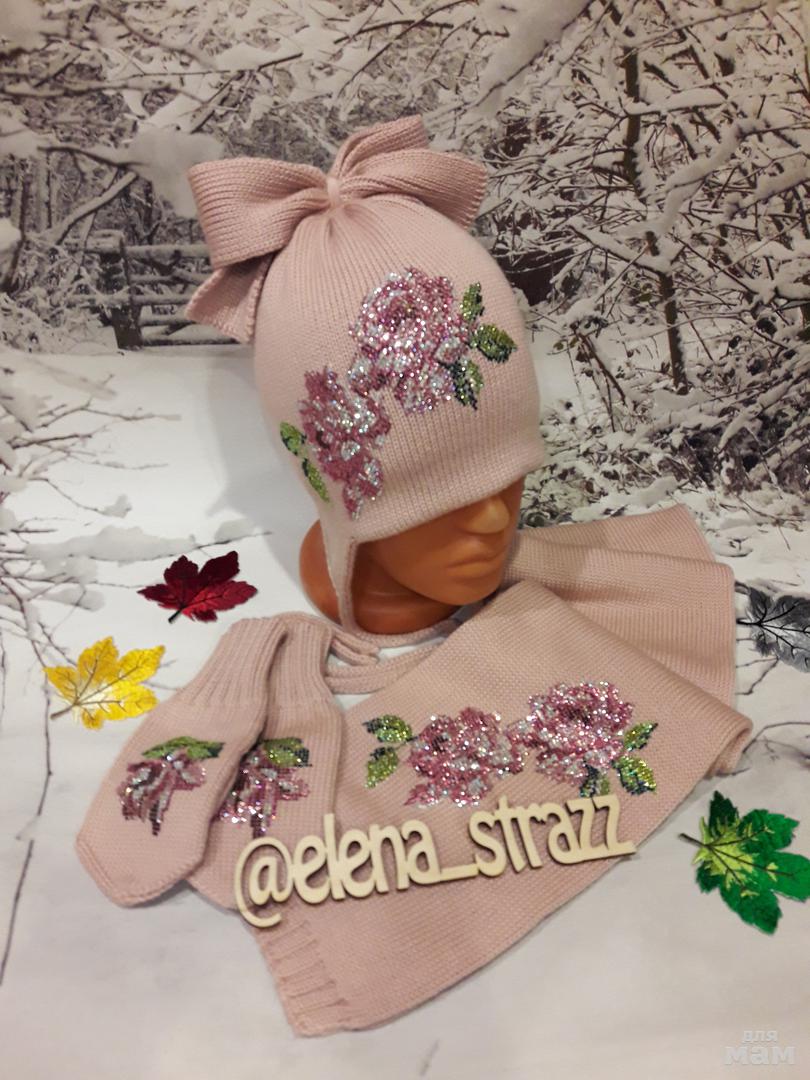Вяжу на заказ шапочки с ручным декором из страз под любые курточки, пальтишки, коминезончики
