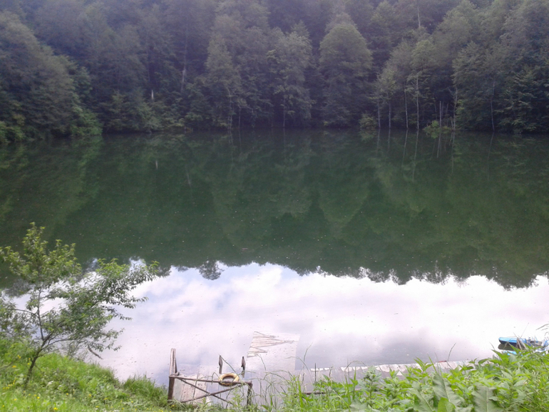 Озеро с минеральной водой. Температура +9 и зимой и летом. Глубина 387 метров. Просто как в зеркало...