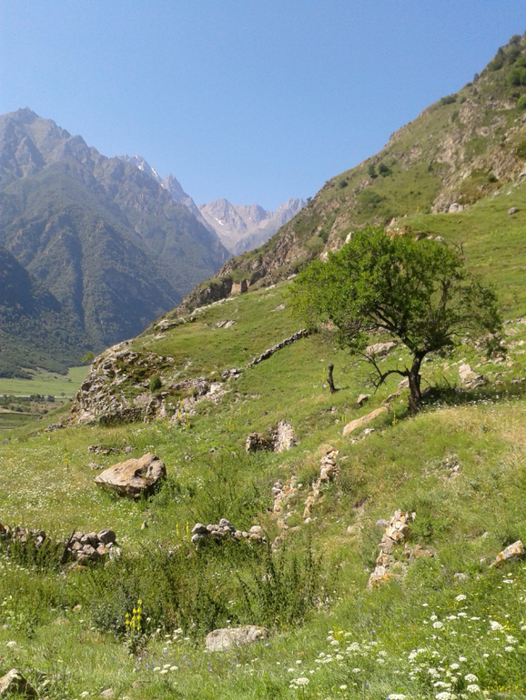 Развалины, оставшиеся от посленеия балкарцев, выселенных в 1944 году советской властью... В 1957 году им разрешили вернуться... Сейчас в близлежащих деревушках живут их потомки...