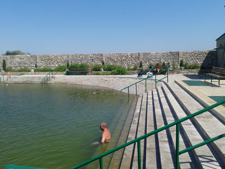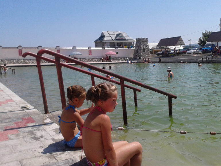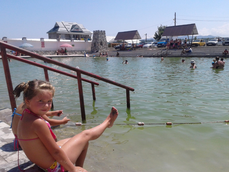 со взрослого человека. Вода градусов 50. Пахнет серо-водородом. Купила