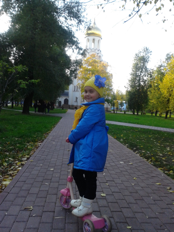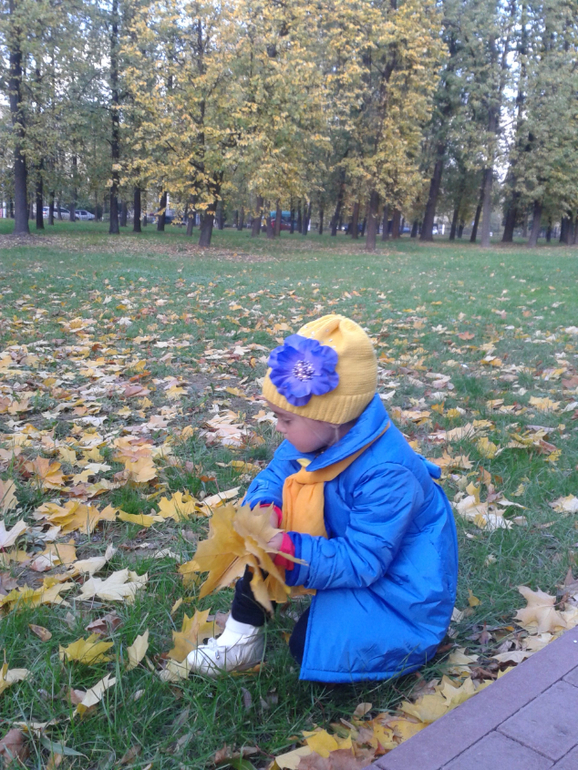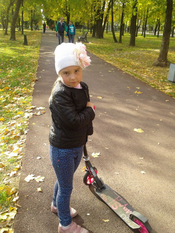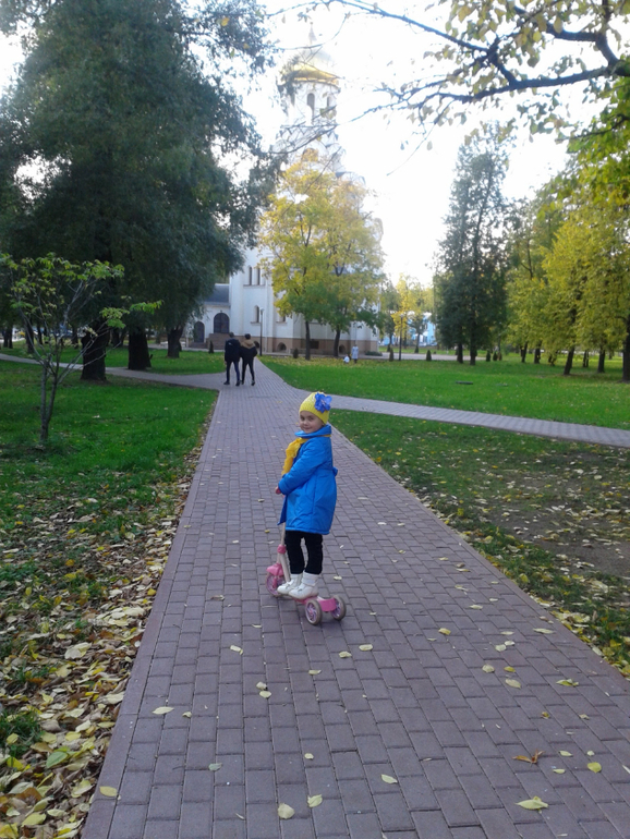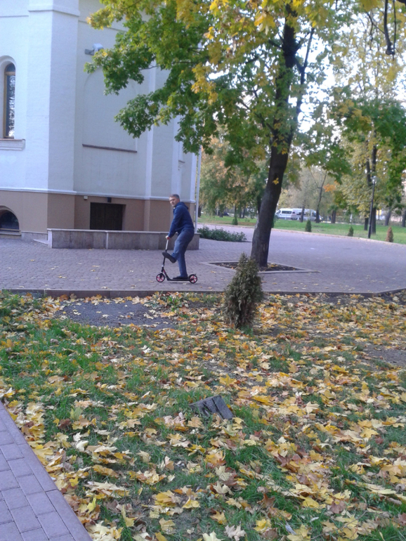 Пока мы собирали красивые листочки, папа наш гонял на самокате:))