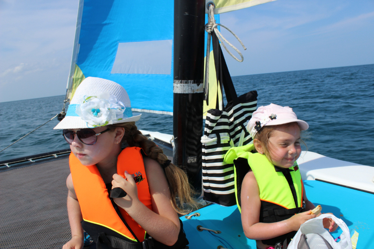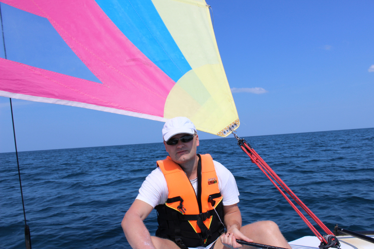 Поскольку у нас на пляже был прокат (бесплатный) лодок, парусников, досок с веслами (не знаю, как они правильно называются) и досок для винсерфа, то мы перепробовали все) Мужа разок унесло на доске с парусником, пришлось спасать)))