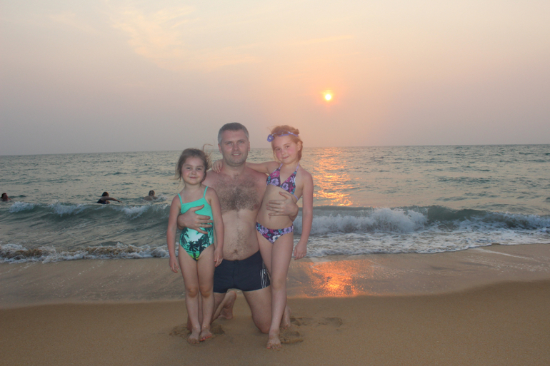 В первый же день, не успев отдохнуть с дороги, дети повели нас на пляж... Были небольшие волны, но это не помешало нам познакомиться с Андаманским морем на закате)...