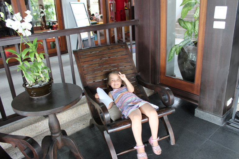 На следующий день изучали отель)... Зал для занятий йогой, ресторан, своя пекарня, бар у бассейна, лобби-бар, фитнесс-центр, детский клуб (как он нас спасал!!!))), прокат велосипедов, прокат водных видов спорта. Я впервые плавала на весельном каяке и СТОЯ!!!! на доске с веслом), бильярд, игры всевозможные, большая фильмотека... Забыла сказать, в номер три плоских телевизора и DVD.