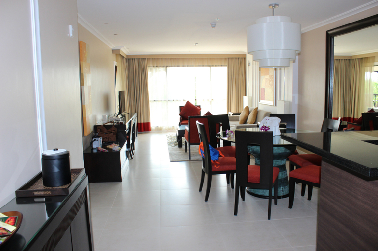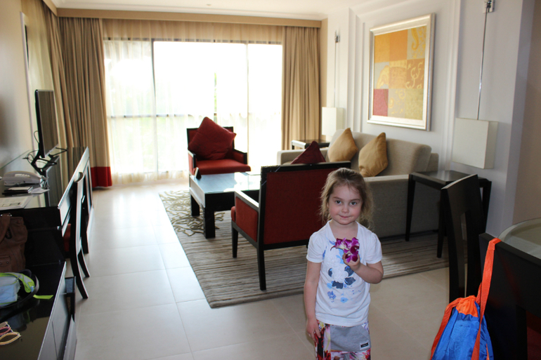 Вот теперь про номер... В таких номера я еще не отдыхала)))... Моя квартира 52 кв.м., а номер в отеле был 127 кв. м!!! Да... еще скажу, что нам заранее присылали анкету для выбора удобств, этаж, вид, расположение и т.д. Так вот поселили в соответствии с нашими пожеланиями) В отеле два вида номеров, как наш, на первых этажах есть свои бассейны в номерах, чуть дороже стоят и еще большей площадью номера, рассчитанные на бОльшее количество людей.