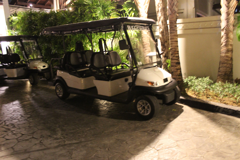 Если тяжело идти до пляжа (минут 10) и с пляжа, то можно доехать вот на таком местном отельном транпсорте... Мы, наоборот, любители пеших прогулок и воспользовались раза два им всего, когда дети "опаздывали" в бассейн к подружкам))...