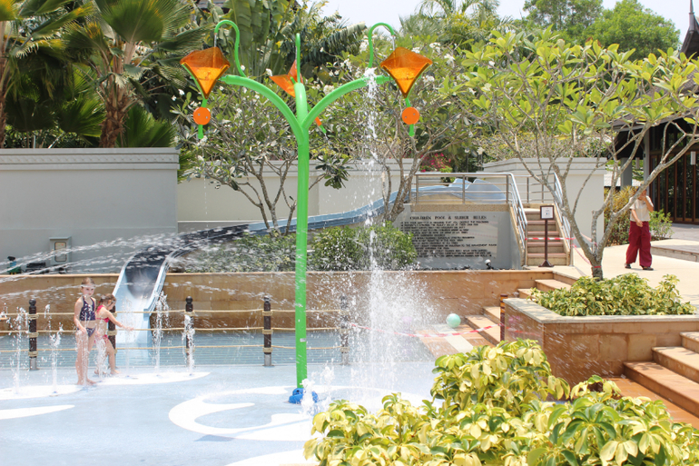 Рядом с бассейном небольшая площадка для детей с горкой.