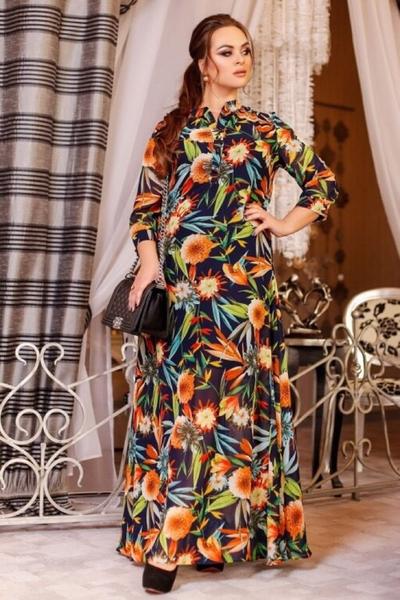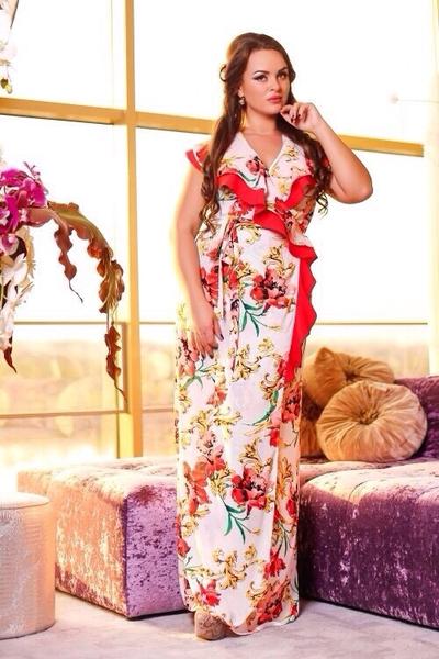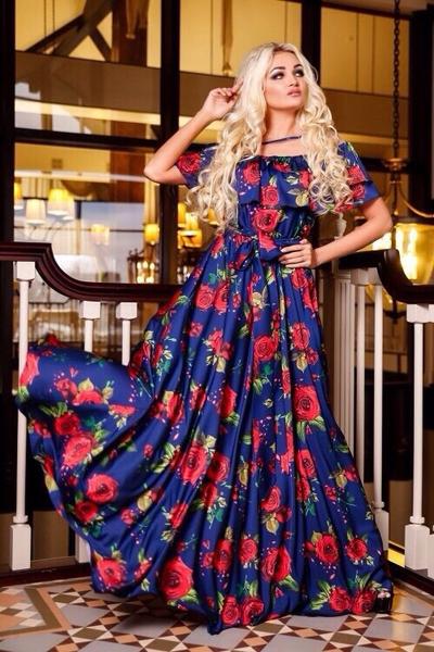 Платье в пол из плотной визкозы с красивым цветочным принтом.Ткань Италия.Длина изделия по центру спинки - 135 см., длина рукава - 15 см. Размеры:42-44 (M); 46-48 (L); 50-52 (XL).