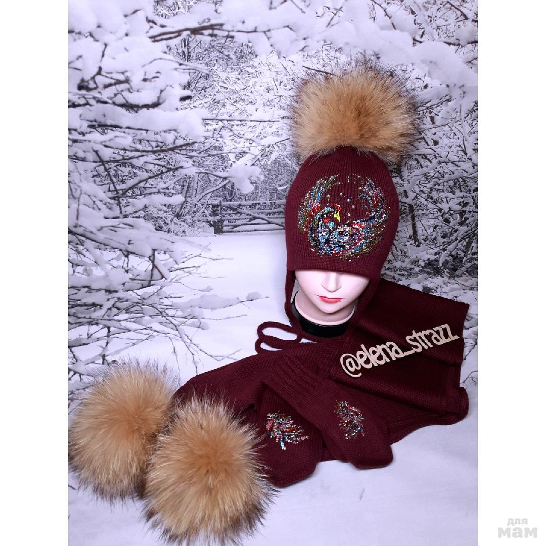 Вяжу на заказ шапочки с ручным декором из страз под любые курточки, пальтишки, коминезончики