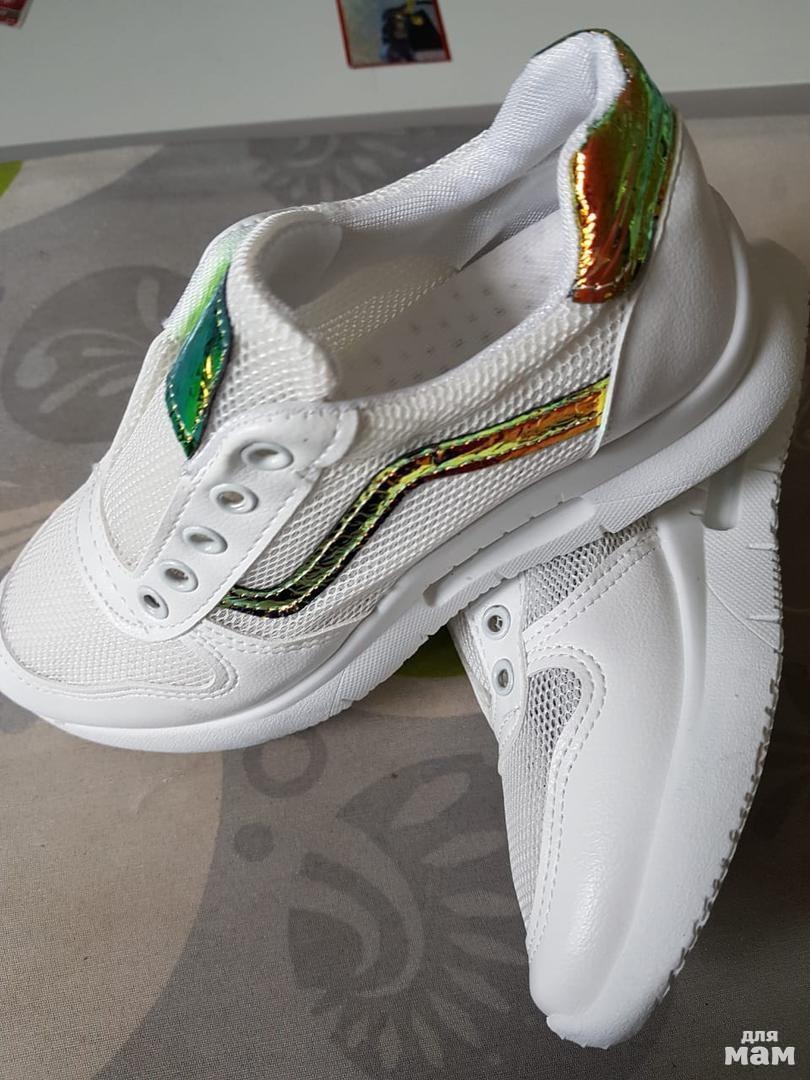 Кроссы сетка белые/золото неон - окон. цена 575руб