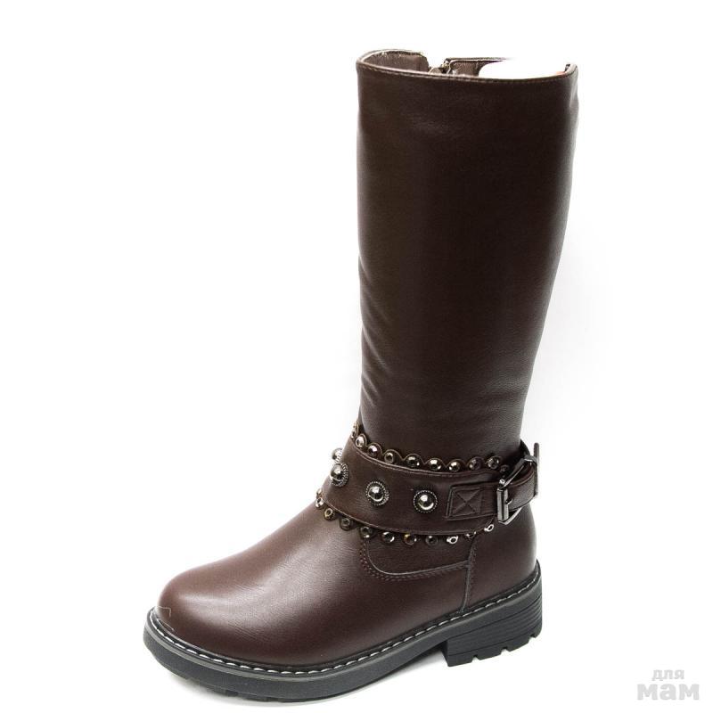 358-9T-САПОГИ ЗИМНИЕ, ИСК.КОЖА/НАТ. ШЕРСТЬ, ЦВЕТ КОРИЧНЕВЫЙ, Р.32-37, 8 ПАР В КОРОБЕ,””B&G””