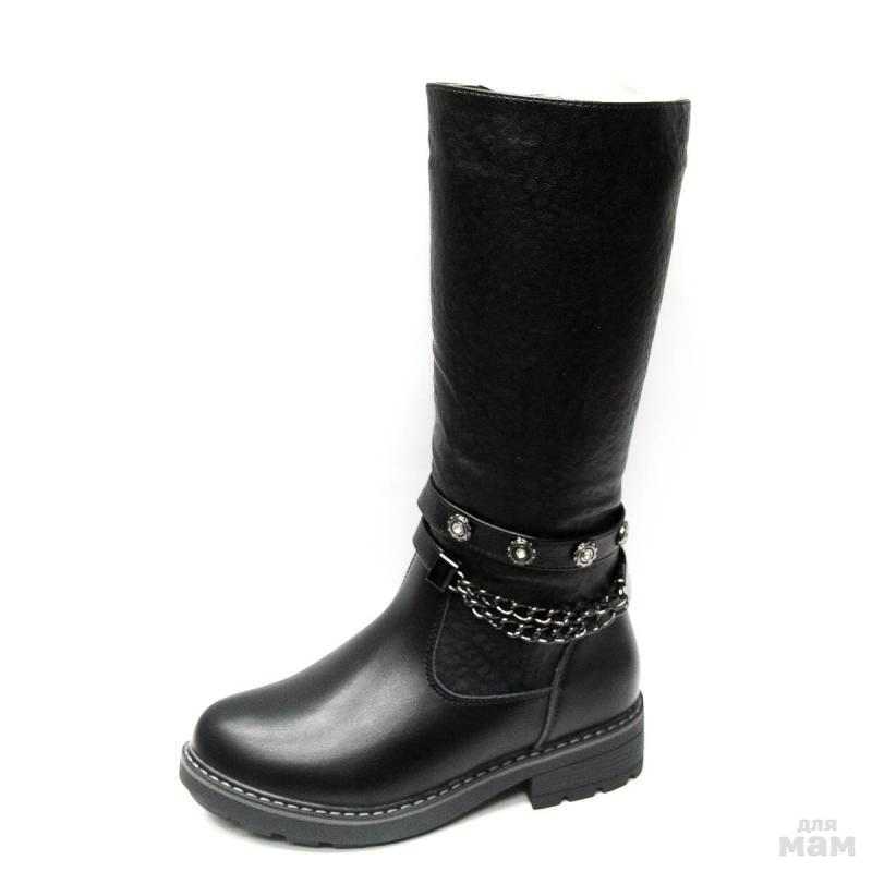 358-6K-САПОГИ ЗИМНИЕ, ИСК.КОЖА/НАТ. ШЕРСТЬ, ЦВЕТ ЧЕРНЫЙ, Р.32-37, 8 ПАР В КОРОБЕ,””B&G””