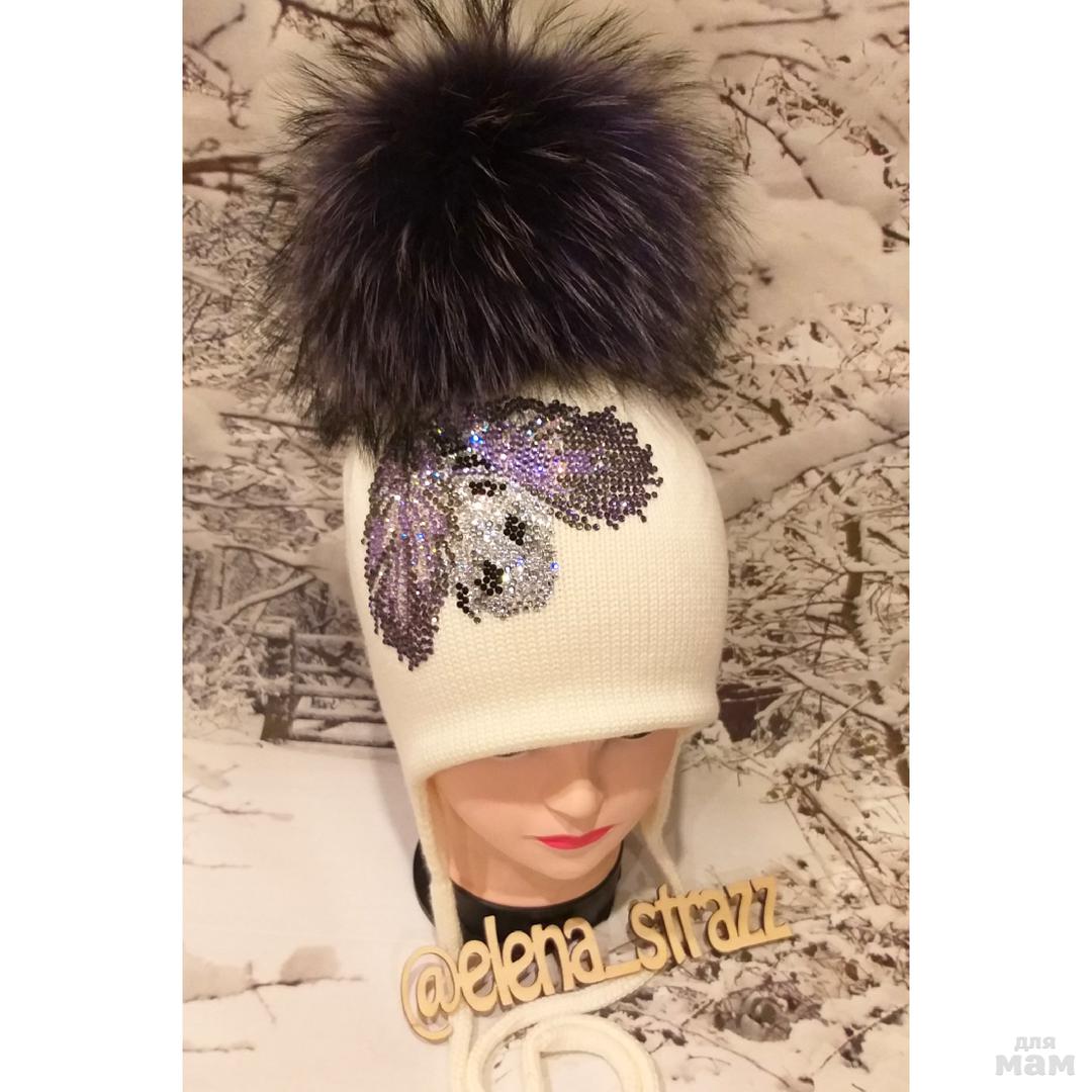 Вяжу на заказ шапочки с ручным декором из страз под любые курточки, пальтишки, коминезончики