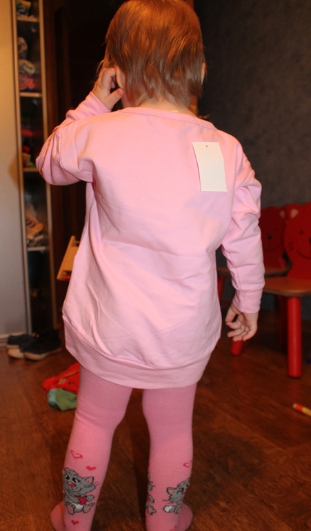 Комплект с юбкой, футболку с котом и голубую толстовку можно уже носить, запас совсем небольшой. Леггинсы с запасом. Малиновый комплект — утонули, даже не стала на ней фоткать. Качество супер, очень довольна!)