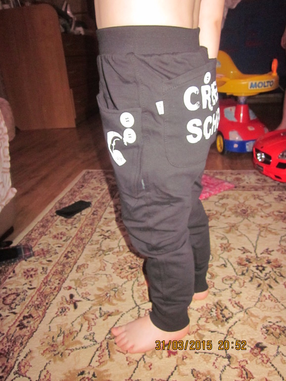 и брючки размер 122, я бы сказала с приличным запасом, очень стильные и материал ооочень приятный, надо бы теперь под них какую-нибудь красную футболочку подобрать))