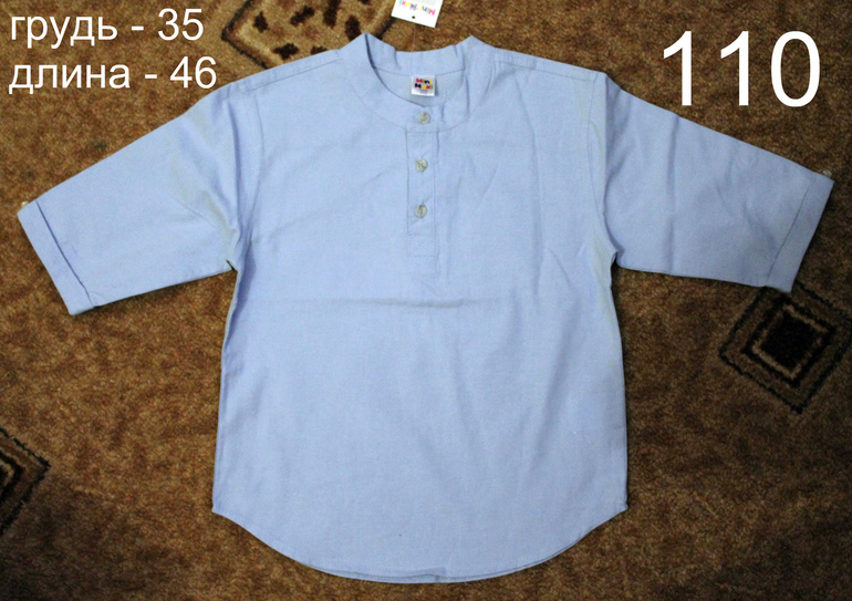 Рубашка 104 размер, подошло хорошо, свободно. Очень классная, 100% хлопок, не тянется, сын весь день в ней ходил, не хотел снимать)))))