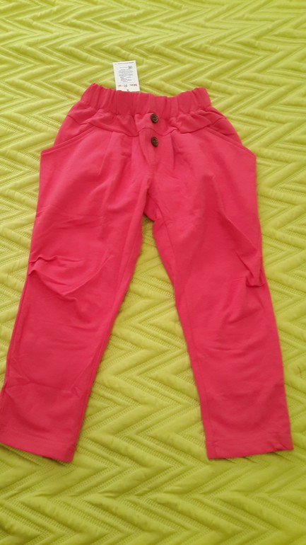 Джемпер с подзором р-р 110, когда брала думала будет сильно на вырост, но нет, запас не такой уж и большой. Тоже получается маломерит, но качество отличное. Специально его взяла для этих брючек, у меня вечная проблема с чем сочетать красный цвет))