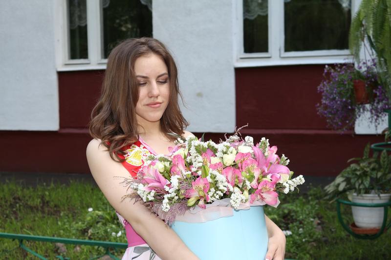 Выпускница с букетом от папы.