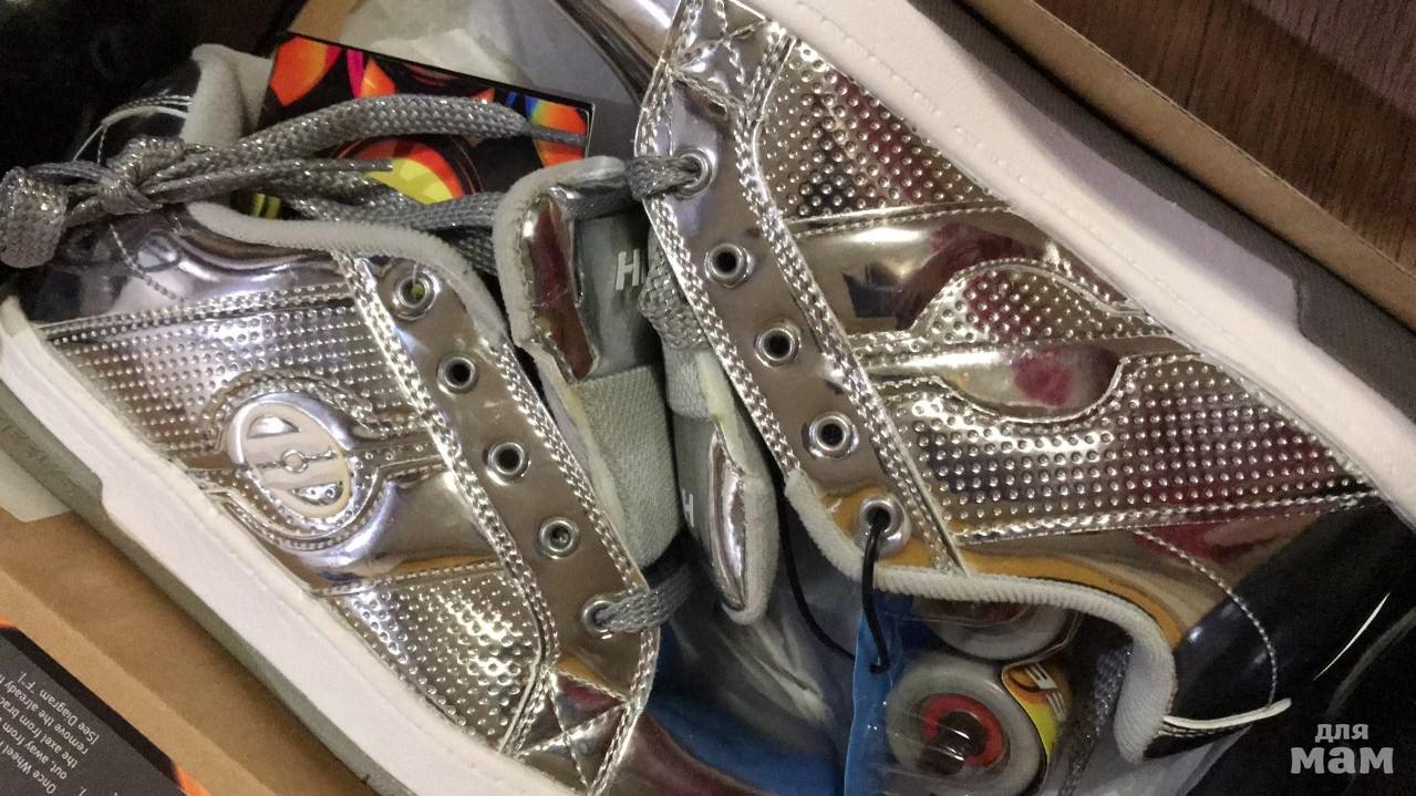 Новые!!! Роликовые кроссовки SPLIT CHROME 770449H (5) HeelySILVERКомплектация: кроссовки, ключ, колесо - 2 шт., заглушка - 2 шт..Длина по стельке 23 см. Нам к сожалению малы.Привезли из Америки.