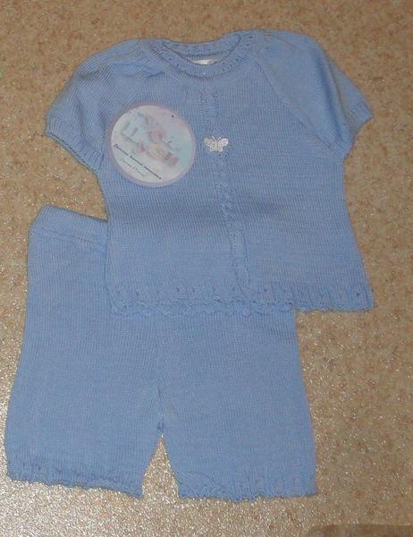 Входит два предмета, шортики и футболка из вязанного хлопка.