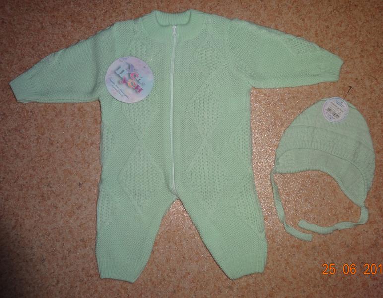 Изнутри комбинезон вывязан хлопковой нитью, в чепчике хлопок - по затылку.