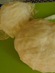 листья капусты , удалить крупные прожилки,поделить половинки листьев