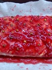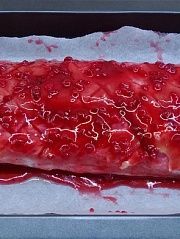 (у меня детский вариант - клубничный сироп с водой) и положить плотно в