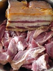 голубцы и укладывать в кастрюлю.Между голубцев кладутся копченые шкуры с