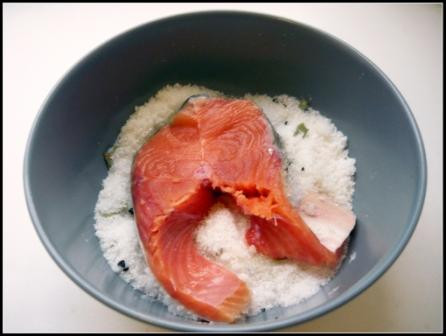 потрошим рыбку,моем и засыпаем обильно солью (и в животик, и