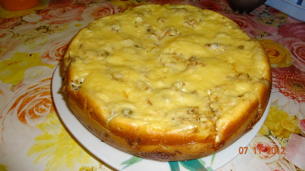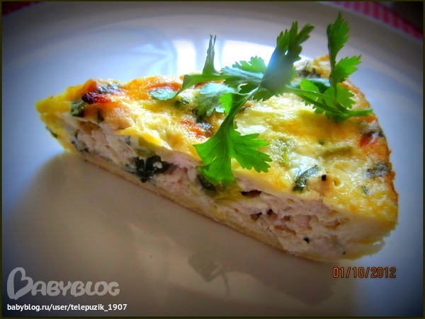 500 мл молока 2 яйца 2 ст.л. раст. масла 1 ст.л. сахара 200 гр муки 2 ч.л. разрыхлителя (или 1 ч.л. гашеной соды) соль Яйца взбить с сахаром и солью. Добавить раст. масло, перемешать. Добавить молоко, хорошо перемешать. Добавить соду и муку, хорошо перемешать.
