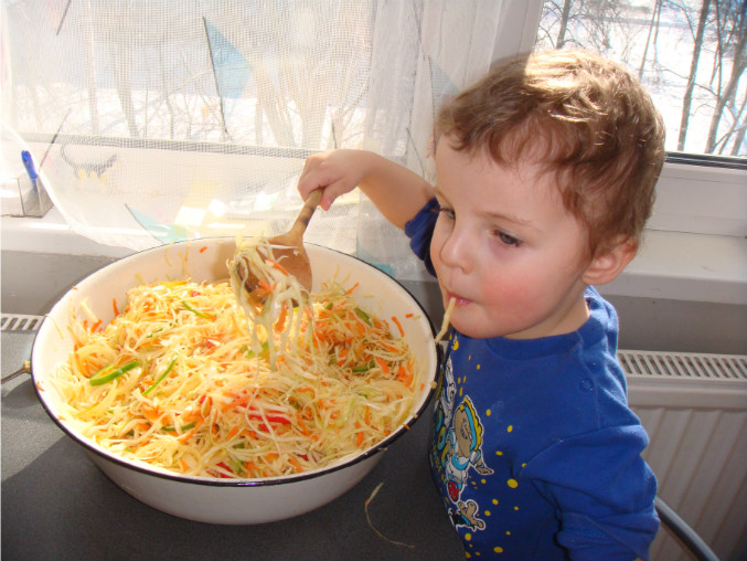 Вообще-то этот салат делаю осенью, ставлю ведро и