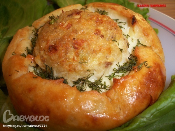 луком и размоченной булочкой, добавила рубленую зелень, яйцо и соль и