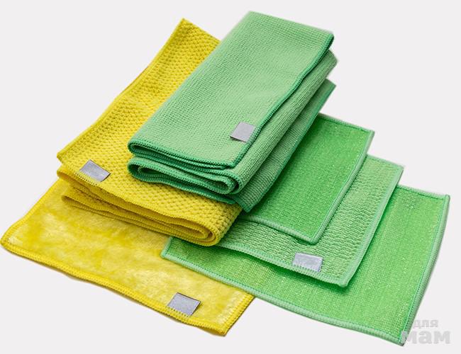 Состав набора: полотенце кухонное; салфетка двусторонняя для мытья посуды (3 шт.); салфетка пушистая для стекла, фарфора, изделий из хромированной стали; салфетка в мелкий рубчик для общей уборки.