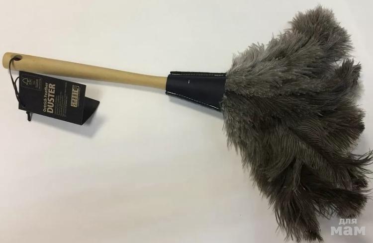 Метущая часть изготовлена из натуральных страусиных перьев. Длина каждого пера – 25 см. Они отлично справляются с мельчайшими частицами пыли и не царапают даже самые деликатные поверхности.