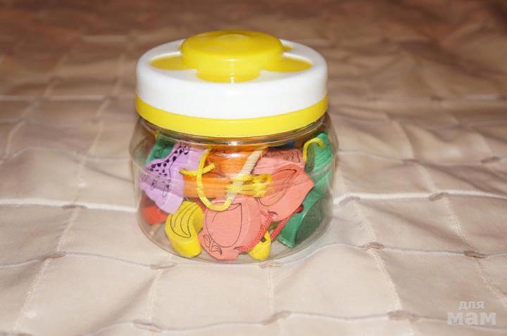 Хотите развлечь малыша полезным и безопасным занятием? Шнуровка поможет вам в этом. Она представляет собой развивающую игрушку, суть которой в том, чтобы нанизывать детали на веревочку. .Этот набор хорош тем, что подходит для игр вдвоём, имеет достаточное количество деталей, а также компактную баночку, которую удобно брать с собой в гости или в дорогу. . В комплекте: ❇️2 иглы ❇️2 шнурка ❇️20 деталей ❇️компактная баночка для хранения . Развивает: ✳️мелкую моторику пальчиков ✳️координацию движений ✳️цветовое восприятие ✳️внимательность ✳️усидчивость ✳️глазомер ✳️гибкость кисти . КАК ИГРАТЬ? . 1️⃣ Нанизывайте детали на верёвочку. 2️⃣ Осваивайте азы счета. 3️⃣ Сортируйте по цветам. 4️⃣ Назовите животных, расскажите ребёнку об особенностях жизни каждого из них. Назовите фрукты.5️⃣ Выложите перед ребёнком ряд из различных деталей, его задача - нанизать детали по образцу. 6️⃣ Поиграйте в игру «Кто быстрее», устроив соревнование между детьми по нанизыванию деталей.