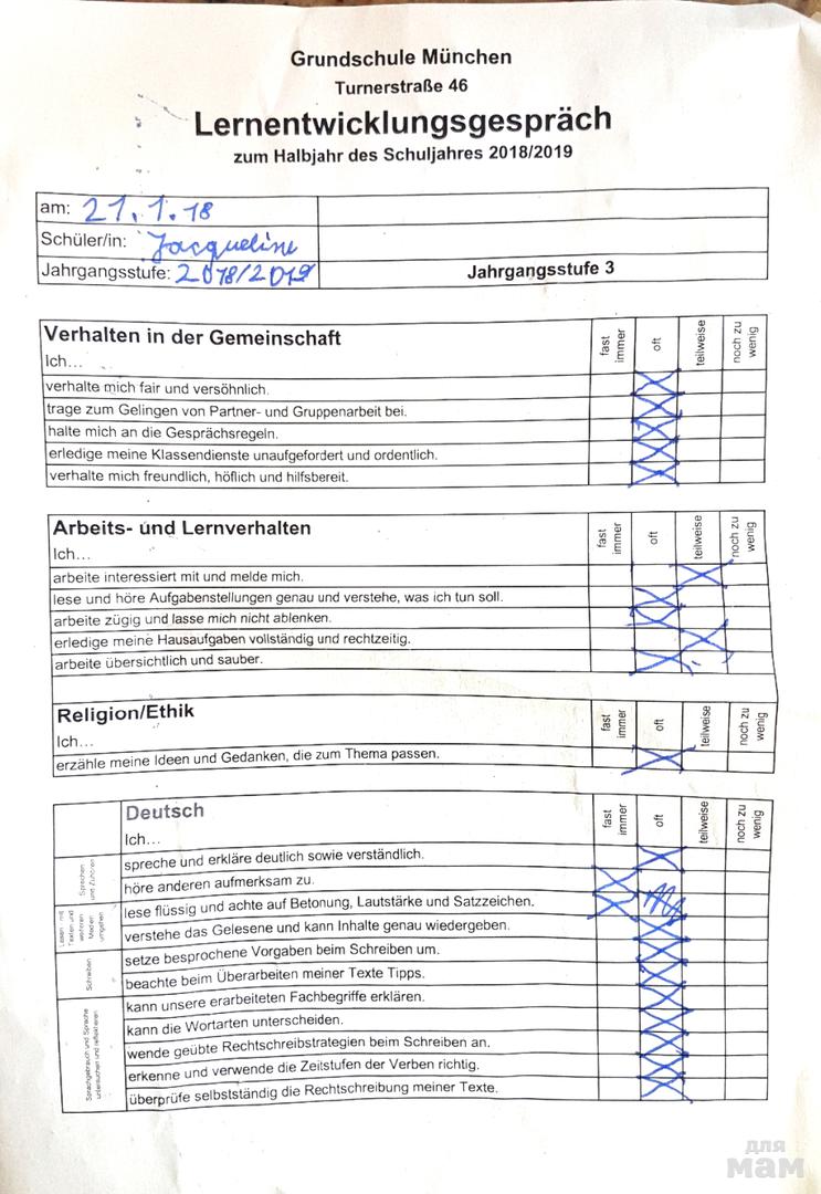 Сегодня рассказ про начальную школу в Германии. А точнее про то, как проходит Лернэнтвиклюнгсгешпрех (Lernentwicklungsgespräch) В прямом русском переводе это "обсуждение развития" ребенка. Такого в Рф нет, поэтому чуть подробней опишу для понимания. Это форма отчетности перед родителями, где в получасовом диалоге участвует лишь ученик и учитель. А родители в роли зрителей, оценивают как ребенок оценивает сам себя, как отвечает, поведение в школе и на уроках, как и в каких сферах продвинулся и каковы его успехи и задачи на будущее.Обычно проходит эта беседа в конце января -феврале.