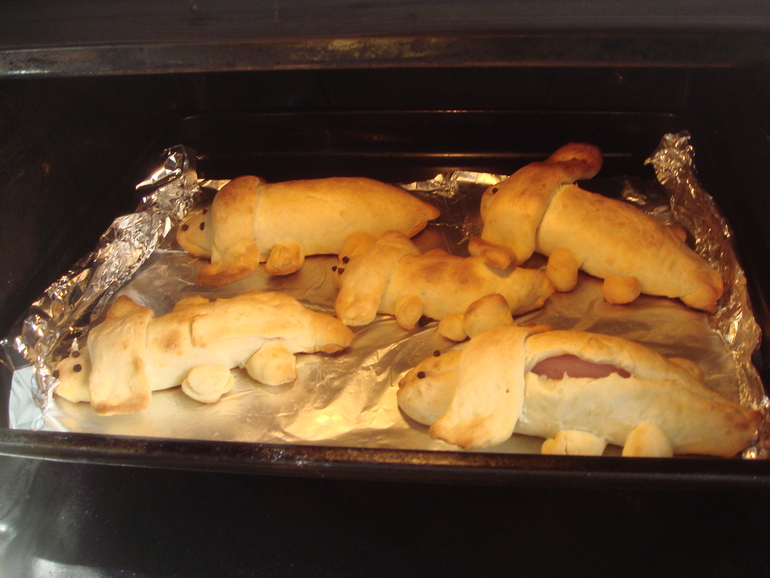 муж у меня любитель вот такой не очень полезной еды, хоть тема детская, но когда я ему такие сварганила-он был приятно удивлен, а удивлять мужчин периодически нужно не только снятием средств с его карты (гы-гы))))))))), так что может кому пригодится, вот ссылочка: http://www.kakprosto.ru/kak-914803-detskie-recepty-sosiska-v-teste-v-vide-sobachki
