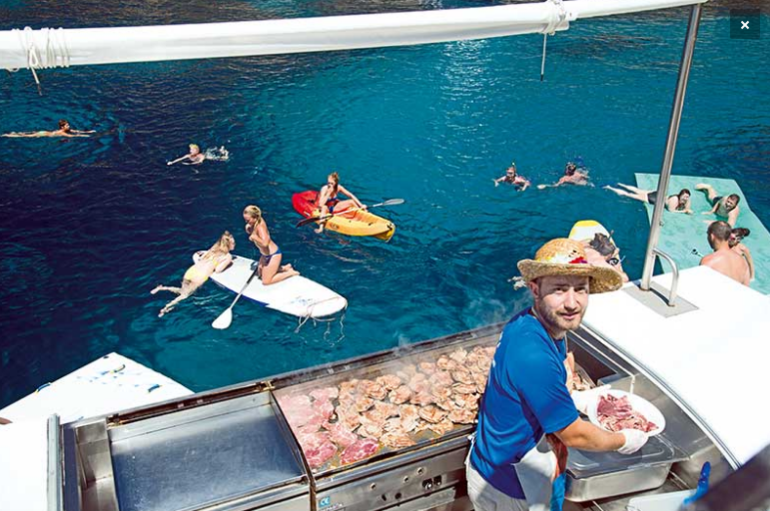 Как вариант морского времяпрепровождения - 5-часовая экскурсия на катамаране вдоль побережья с барбекю и заплывами в интересных бухтах. Тоже интересно и весело обычно бывает) И более бюджетно - 57 евро/чел.