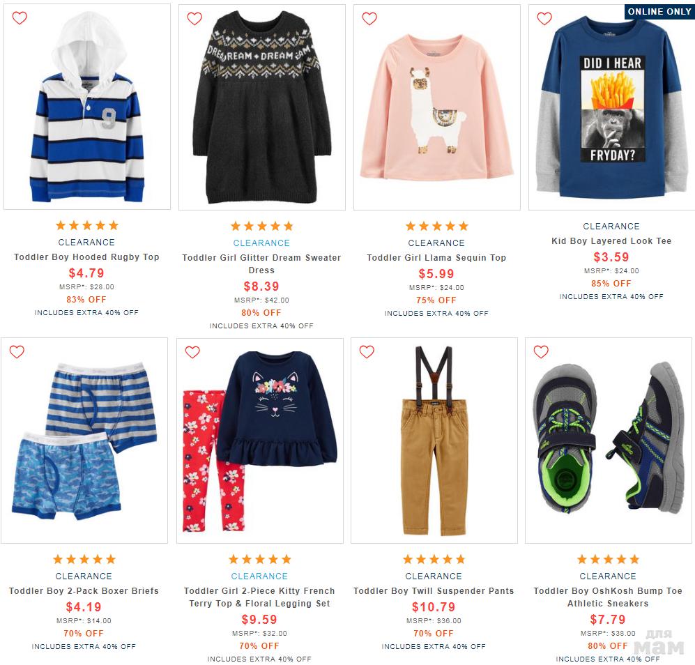 И ДОП. СКИДКА -40% ОТ КРАСНОЙ цены на разделы: CLEARANCE Carter's и CLEARANCE OshKosh